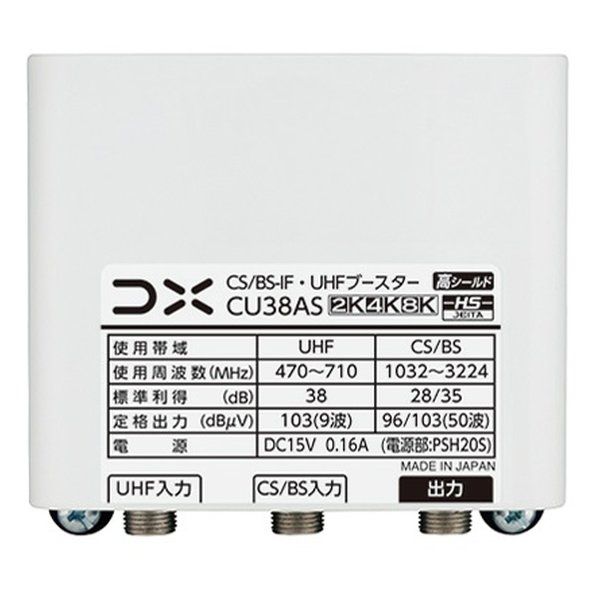 DXアンテナ ディーエックスアンテナ CS BS-IF UHFブースター 38 dB形 4 K 8 K衛星放送 3224 MHz 対応 CU AS 2658969