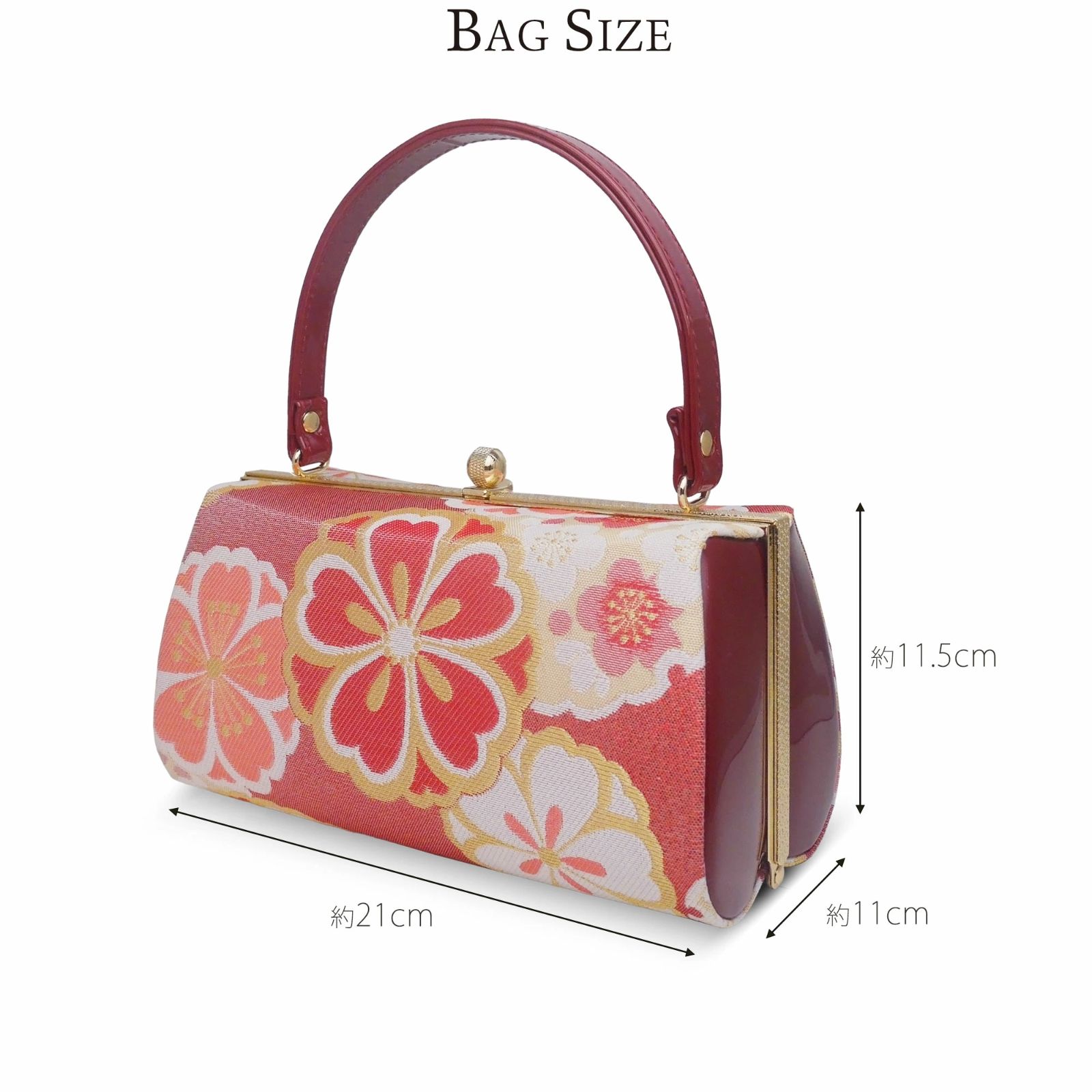 草履バックセット 成人式 振袖 フォーマル 桜 帯地 ワイン レッド 金 訪問着に最適 ママフリ フリーサイズ バッグ swzouribag 5-9