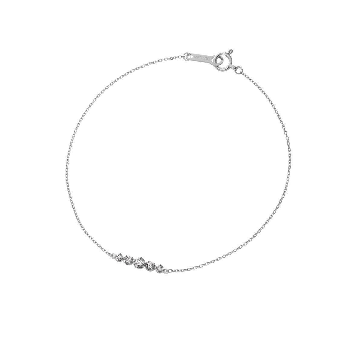 上質な輝きを放つプラチナブレスレットの中央で5粒のダイヤモンドが輝くデザイン。女性誰もが憧れるプラチナ素材の輝きとダイヤモンドの煌めきが楽しめます。 ギフトにもおすすめです。