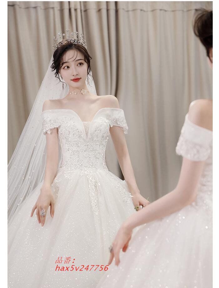 ウェディングドレス オフショルダー 白 刺繍 花柄 スパン結婚式ドレス レーンドレス 花嫁ドレス ブライダルドレス 挙式 披露宴 ト ロングドレス hax 5 v 247756