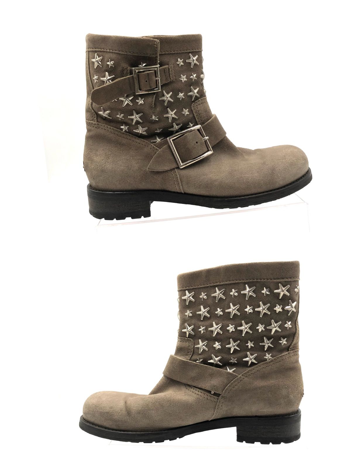 JIMMY CHOO ジミーチュウ スタースタッズ エンジニアブーツ ショートブーツ JAPAN EDITION 日本 販売品 スエード レザー ロゴプレート ブラウン系 イタリア製 サイズ37.5 24.5 cm レディース