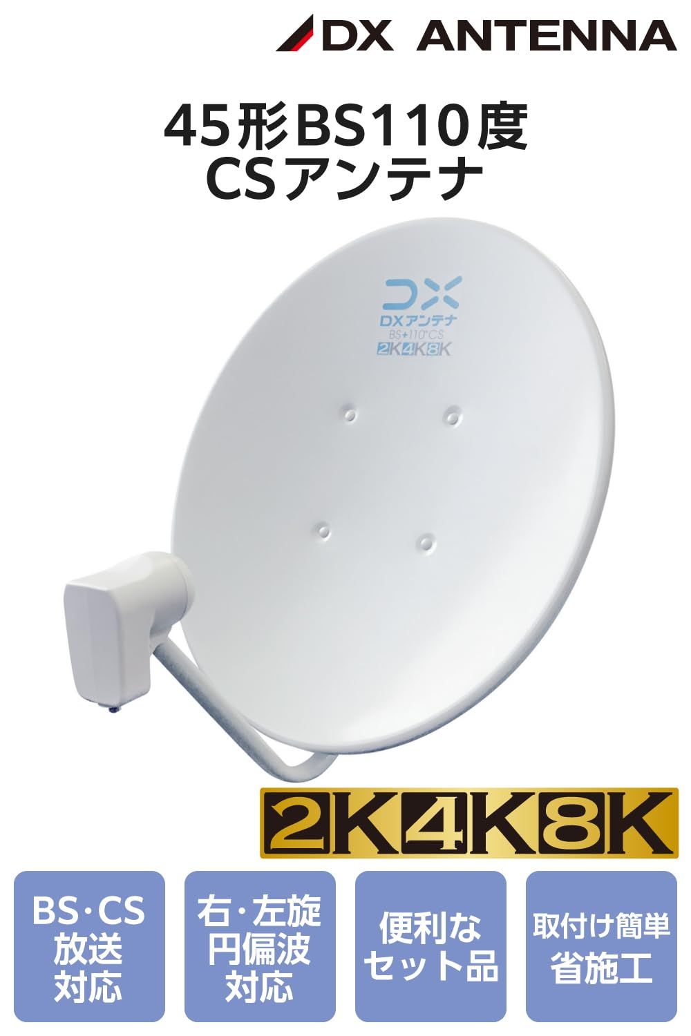 2 K 4 アンテナ本体 ベランダ用取付金具 同軸ケーブル 設置用スパナ 8 3224 MHz 対応 45形 一般家庭での使用に最適 BS 110度CSアンテナセット マニュアル付き bsアンテナ EC-PA 45 DXアンテナ