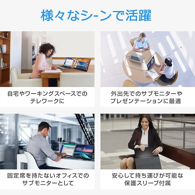 【超軽量・超薄型・超細いベゼル】最薄部5mm、軽さはなんと約490gと、どこへでも気軽にノートパソコンと持ち運ぶことができます。上と左右のベゼルはわずかの4mm、周りとほぼ溶け込んでいる!マグネシウムリチウム合金をボディに採用することで、一般的なマグネシウム合金や鉄などの素材に比べて軽量かつ堅牢性が高いことが特徴です。いつでもどこでも気軽にデュアルディスプレイ環境が作れ、広い画面で作業効率が向上します。