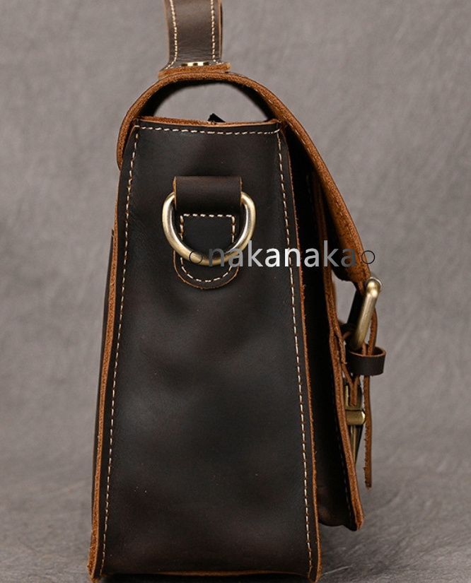 推薦 メンズレザーショルダーバッグ 本革 メンズ 鞄ハンドバッグ ハンドバッグ ヌメ革 ビジネスバッグ ダークブラウン