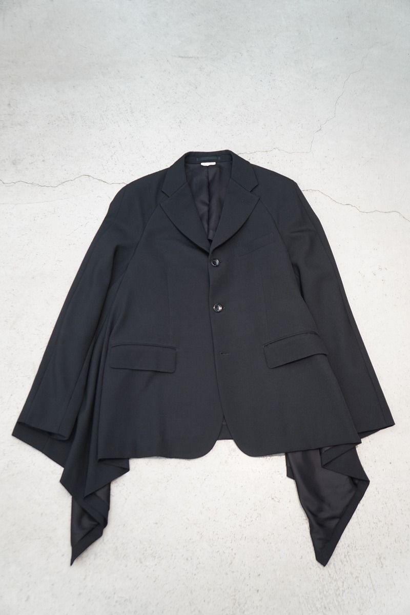 COMME des GARCONS HOMME PLUSのマントとドッキングしたような変形シルエットの3Bジャケット。