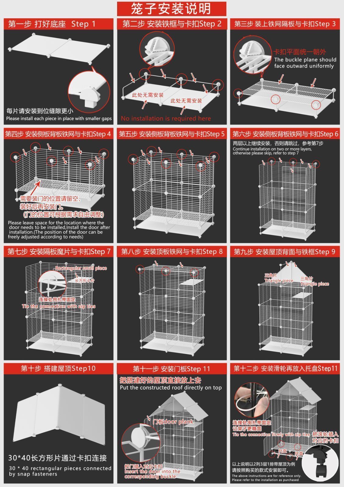 掃除に便利な取り外し可能なトレイが付いており、ケージを衛生的に保ち、汚染物質のない状態に保ちます。4つの強力な回転キャスター、強力な安定性、簡単な滑り、どの部屋にも簡単にアクセスできます。ロック可能なデザインにより、ケージを特定の領域に固定でき、ケージをより安全で安定させます。
