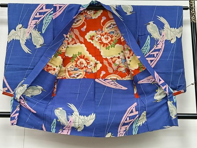 平和屋着物#アンティーク 大正ロマン 長羽織 紬地 白鷺 正絹 ua
