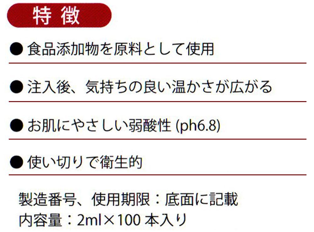 温感成分配合で、注入するとなかでじんわりと温かくなり、心地よいぬくもりです。