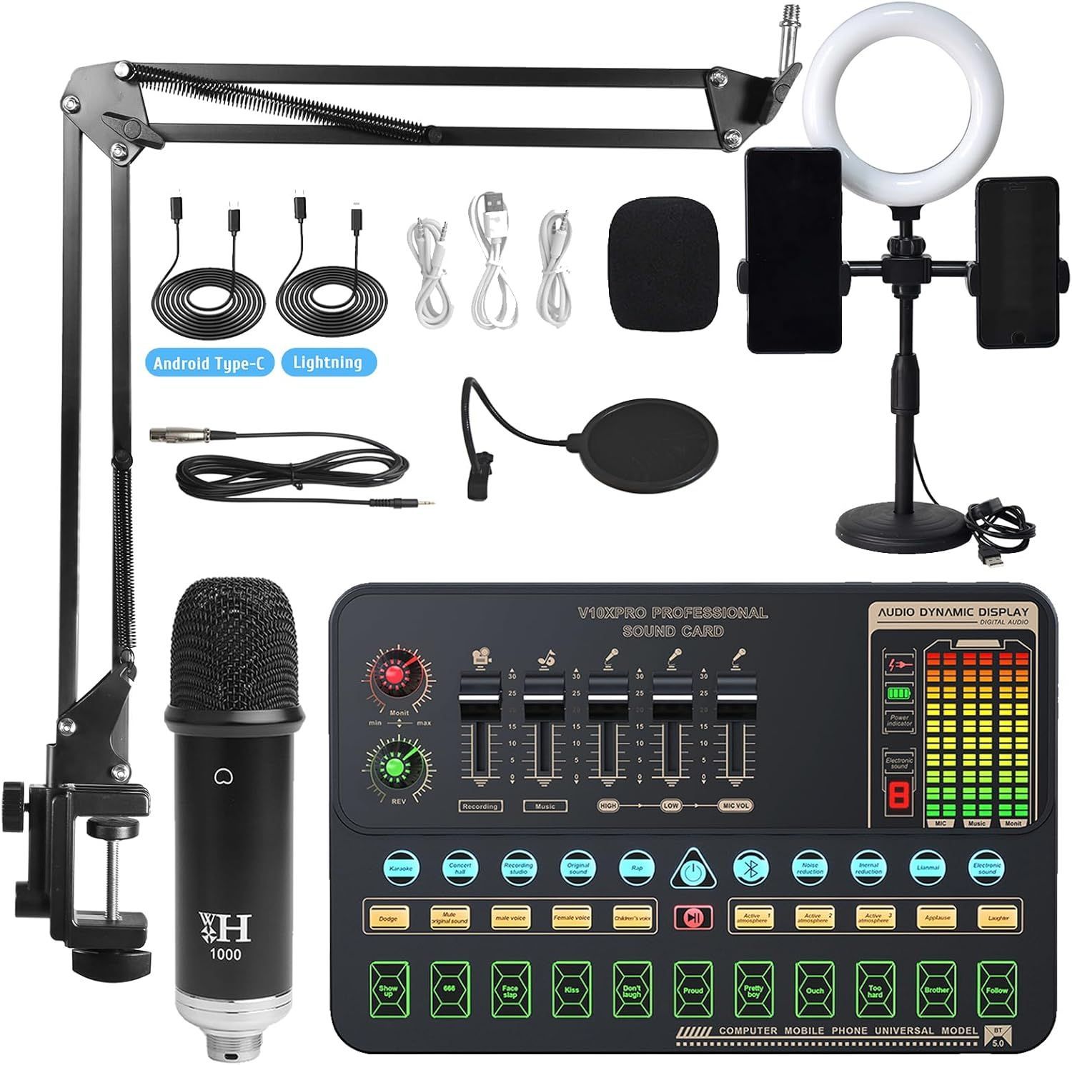 オーディオミキサー 配信機材セット オーディオインターフェース USBコンデンサーマイク LEDリングライト