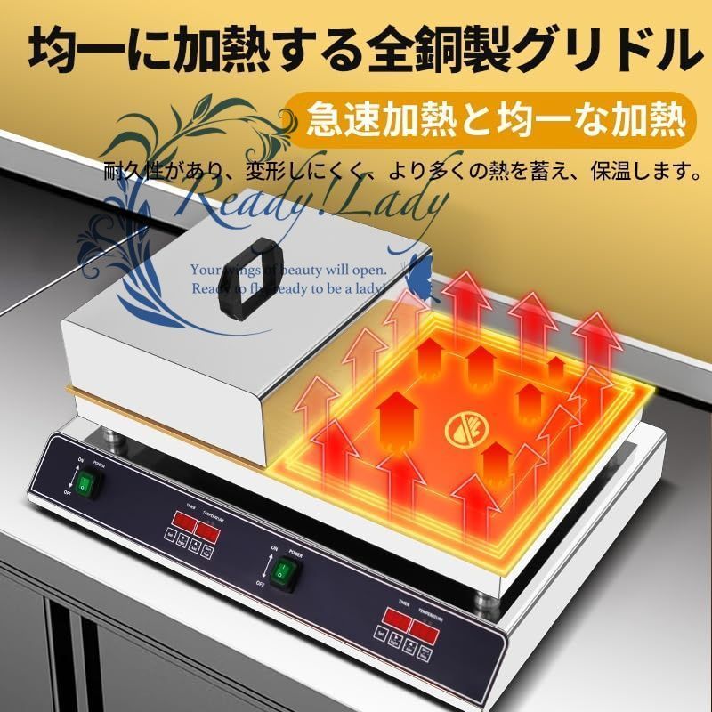 【銅プレート】厚みのある銅加熱プレートで設計されており、加熱が速く均一です。熱伝導率が良く、消費電力を抑えます。耐熱性も高いです。高効率!