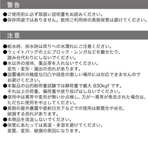 中身は水だけですので比重は約1.0です。(ポリマー式土のう:約0.95)