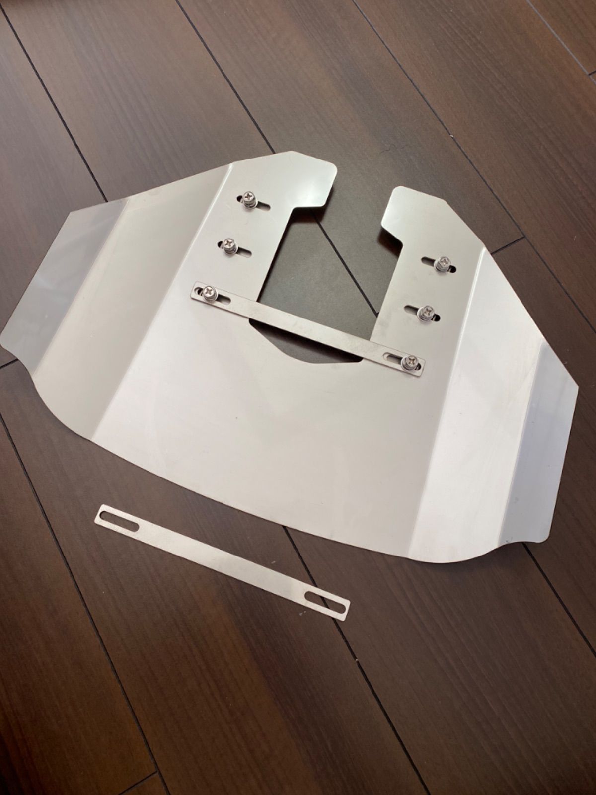 左右のプレート及び裏側の補強プレート、取付ボルトは付属します(ステンレス製)
