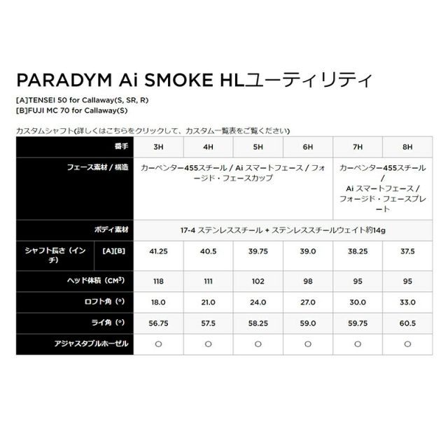 Callaway PARADYM Ai SMOKE HL ユーティリティ TENSEI 50 for Callawayキャロウェイ パラダイム エーアイ スモーク エッチエル 日本モデル メンズ