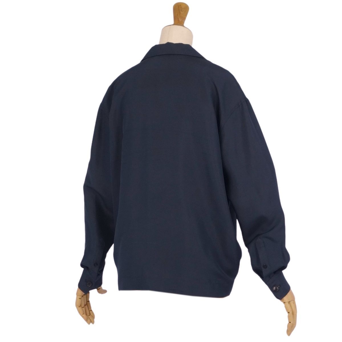 美品 エルメス HERMES シャツ ジャケット ロングスリーブ 長袖 シルク アウター レディース 36(S相当) ネイビー