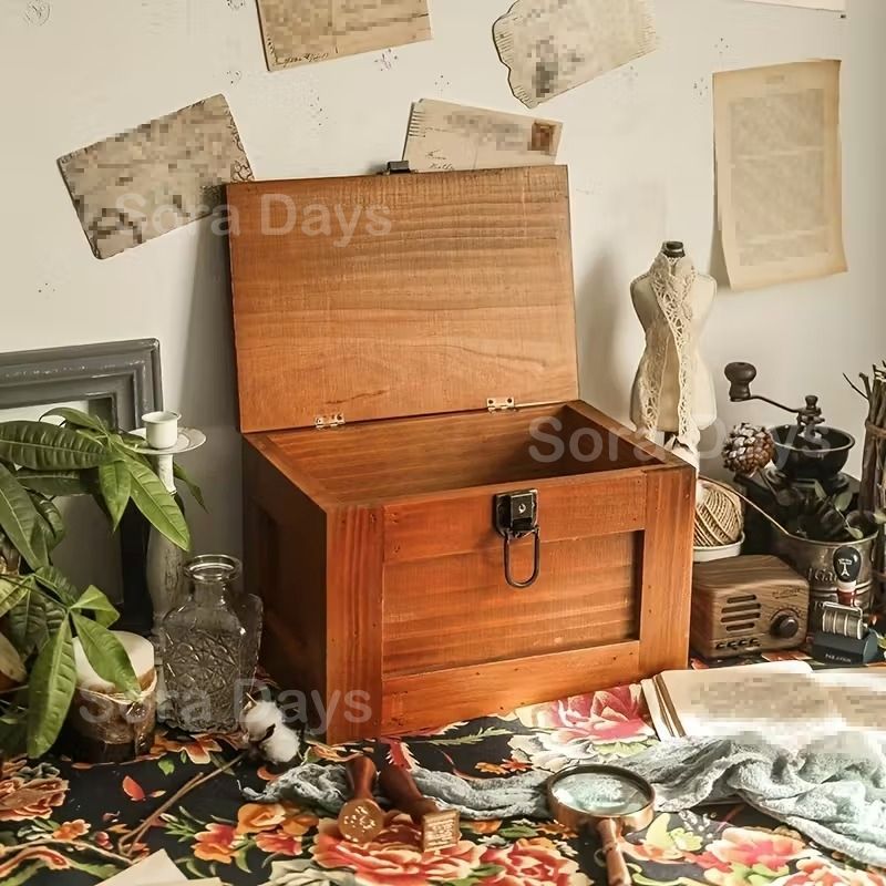チェスト キャビネット 木箱 ヴィンテージ風 アンティーク調 ナチュラル おしゃれ インテリア 北欧 収納 蓋付き フリップトップ 卓上 木製 29. . .2 cm