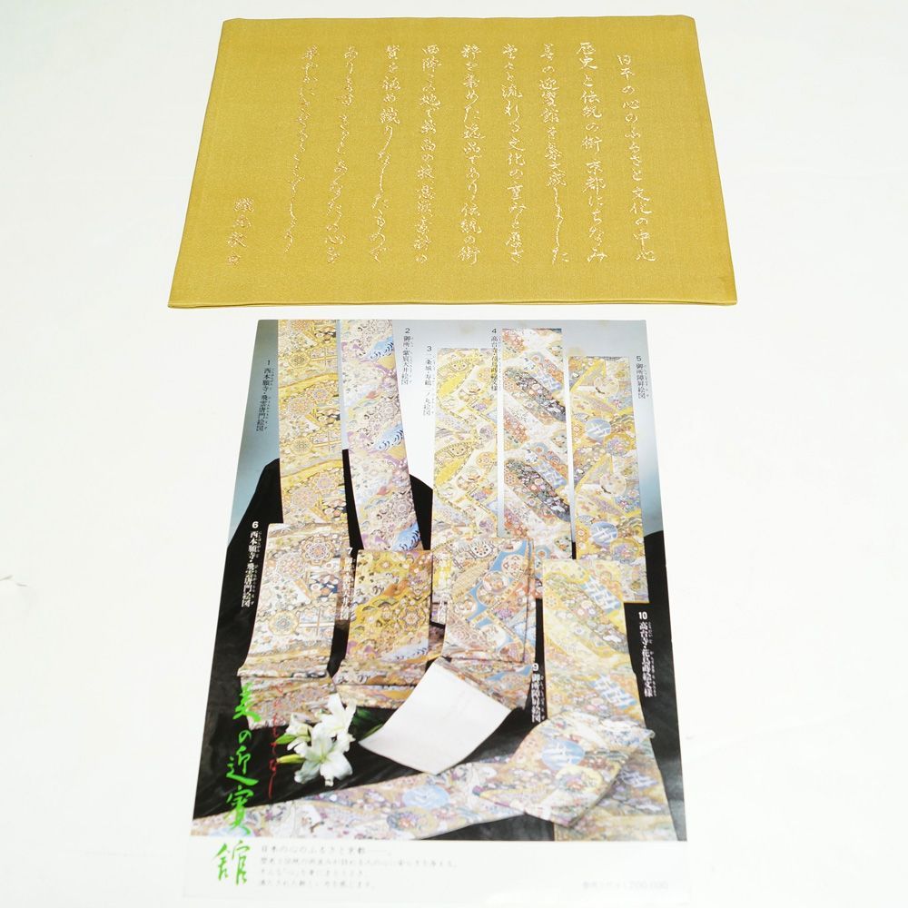 日本の心のふるさと、文化の中心・歴史と伝統の街、京都にちなみ、美の迎賓館を集大成とした、堂々と流れる文化の重みと厚さ、粋を集めた逸品であり、伝統の街京都、この地で最高の技・意匠、素材の贅を極め織りなしたものであります。きっとあなたの心を華やかにさせることでしょう。【織元敬白】と御座います。