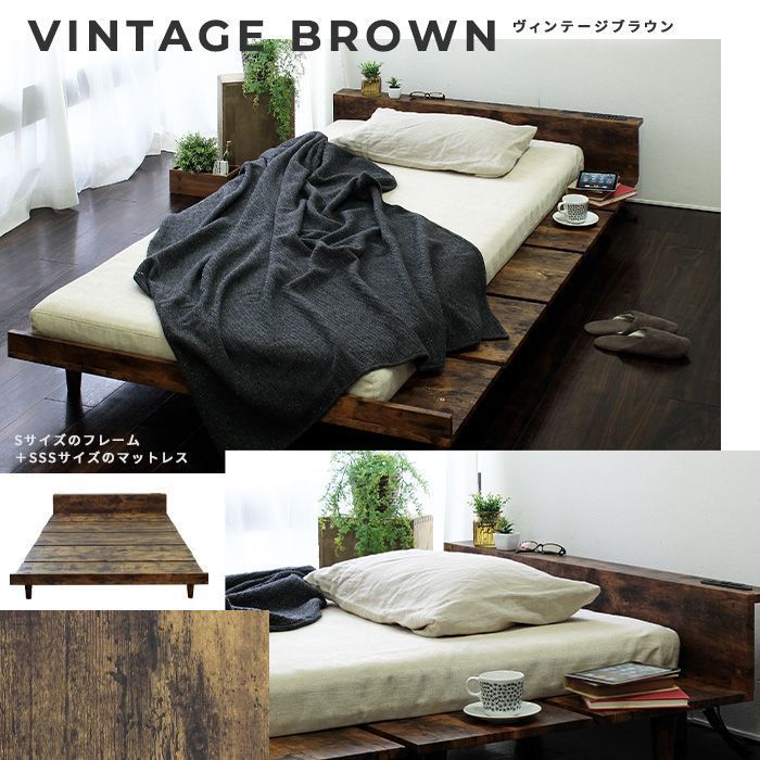 北欧テイストロースタイルベッド Duranta デュランタ セミダブルサイズ フレームのみ jx 44664 USBコンセント付き マットレスズレ防止 ナチュラル ホワイト ヴィンテージブラウン グレー 全 7682