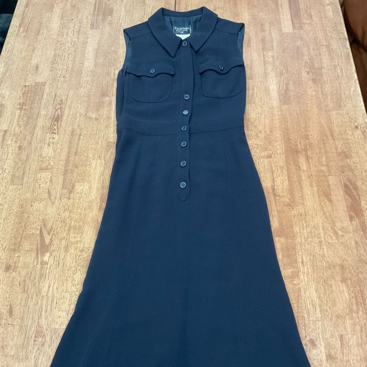 シャネル ウール ノースリーブ ワンピース P 06139 ネイビー 38