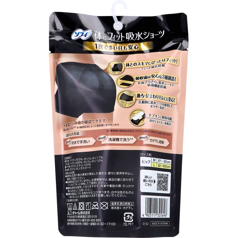 ソフィ 体にフィット吸水ショーツ ボクサータイプ 多い日用 ブラック Lサイズ 入 セット