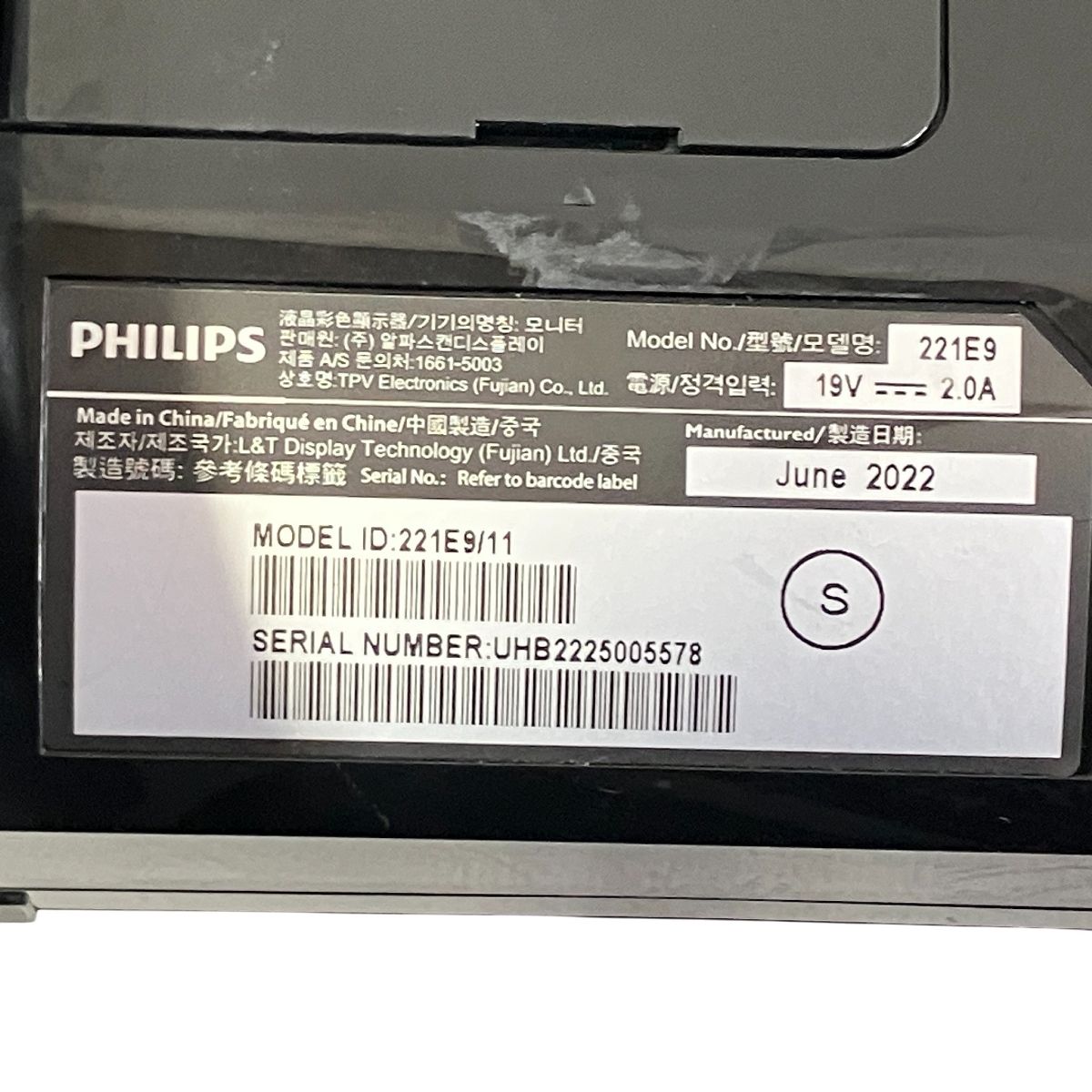 こちらは「 PHILIPS 221E9/11 液晶ディスプレイモニター 21.5インチ 2022年製 PC周辺機器 新品 」でございます。