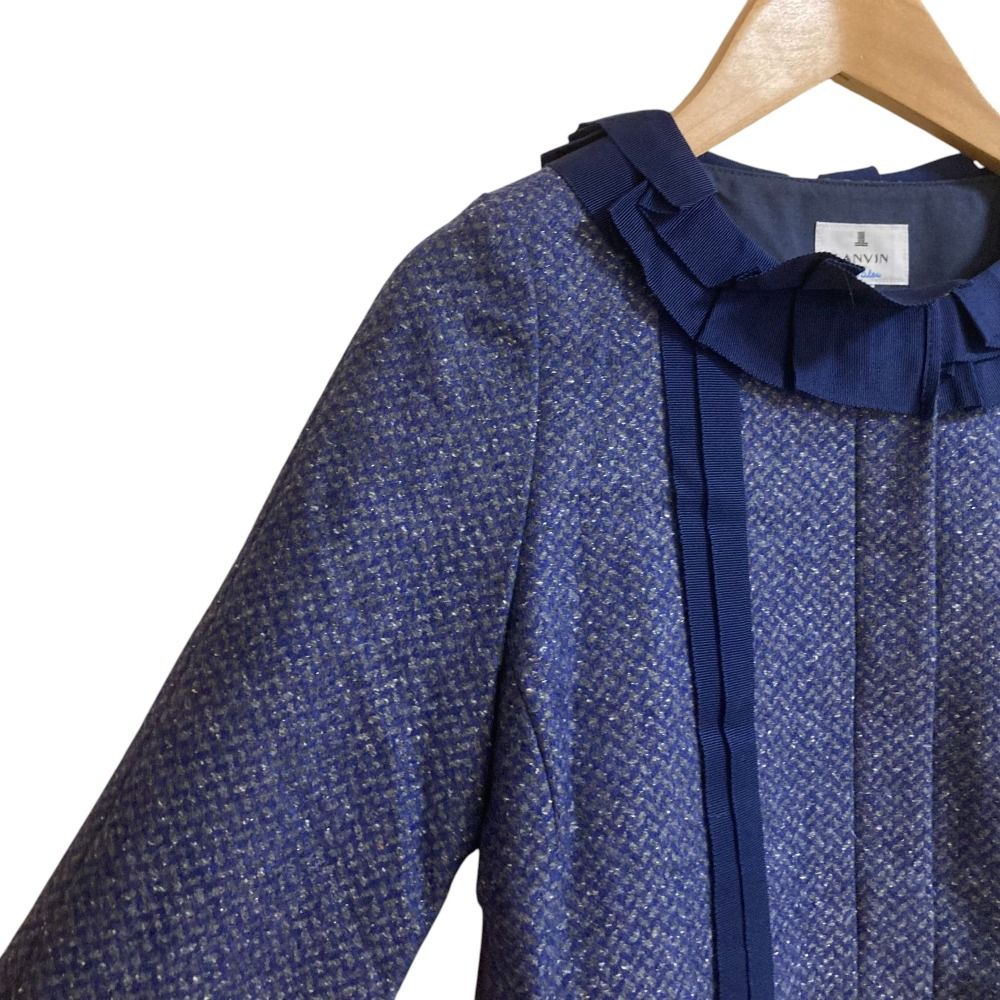 【商品名】LANVIN en Bleu ランバンオンブルー ノーカラージャケット ひざ丈 スカート スーツ セットアップ サイズ36 ブルー ネイビー