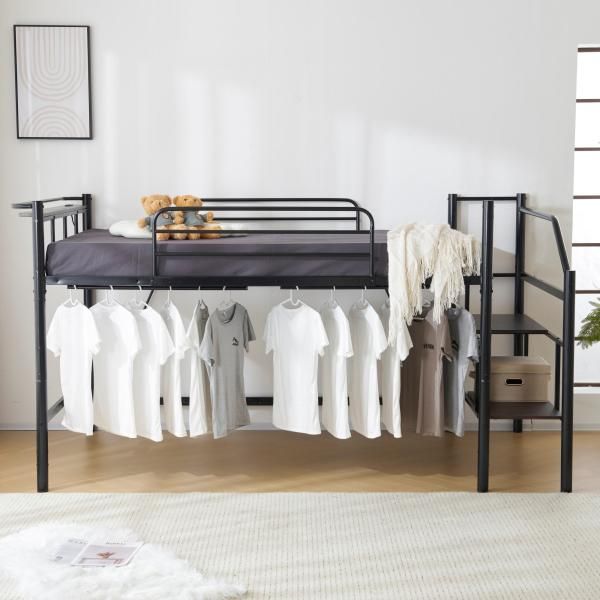 システムベット ロフトベッド パイプベッド 耐荷重150 kg 高さ130 cm セミダブル ロータイプ 棚 収納 北欧風 大人 子供部屋 スチール 耐震 ベッドセミダブル