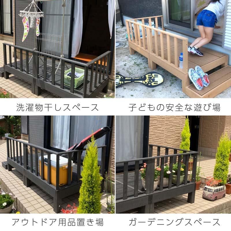 ウッドデッキ 置くだけ 人工木材 樹脂 腐らない 屋外 DIY 後付け フェンス チーク ブラック ウッドパネル リフォーム ウッドテラス えんがわ 縁台 ぬれ縁 アイウッド ガーデニング 洗濯物置くだけで施工費0円の簡単DIYデッキです。