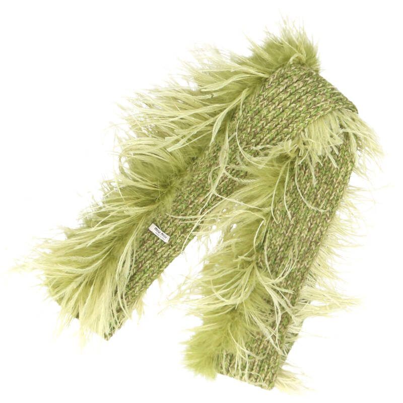 ミュウミュウ フェザーディテールカシミヤニットスカーフ レディース