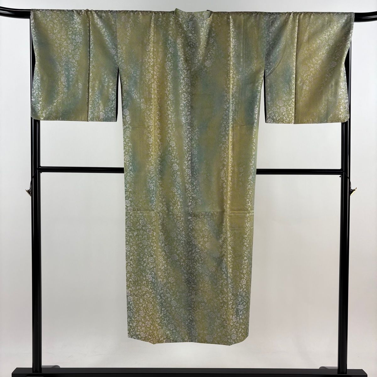 道行 身丈139.5 cm 裄丈68.5 L 和装コート 千代田衿 草花 鳥 ぼかし 黄緑色 正絹