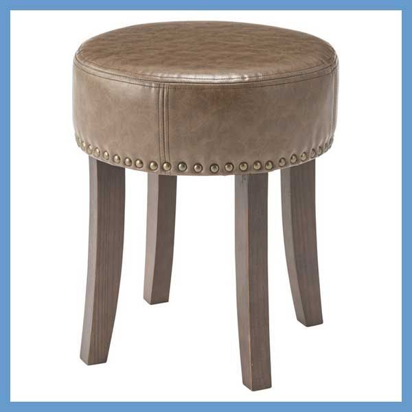 天然木 バーチ とボンデッドレザー 再生皮革 の丸型スツール W 35×D 35×H 40 cm No.557 ブラウン