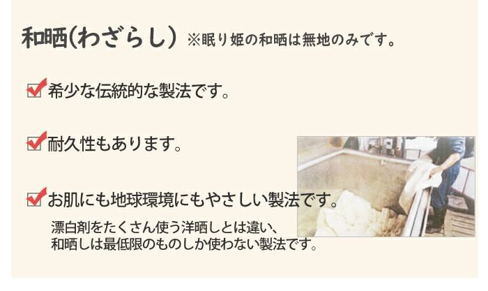無地では両面に・柄生地では裏面に、よりソフトな肌触りの和晒加工の生地を使用しています。