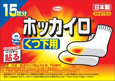 通勤・通学にいつでも手軽にぽっかぽか。くつ&くつ下用タイプのホッカイロです。適正温度が安定的に持続します。●くつ用&くつ下用:持続時間約5時間