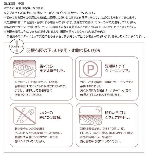 このセットの羽根掛け布団は、スモールフェザー100%仕上げです。