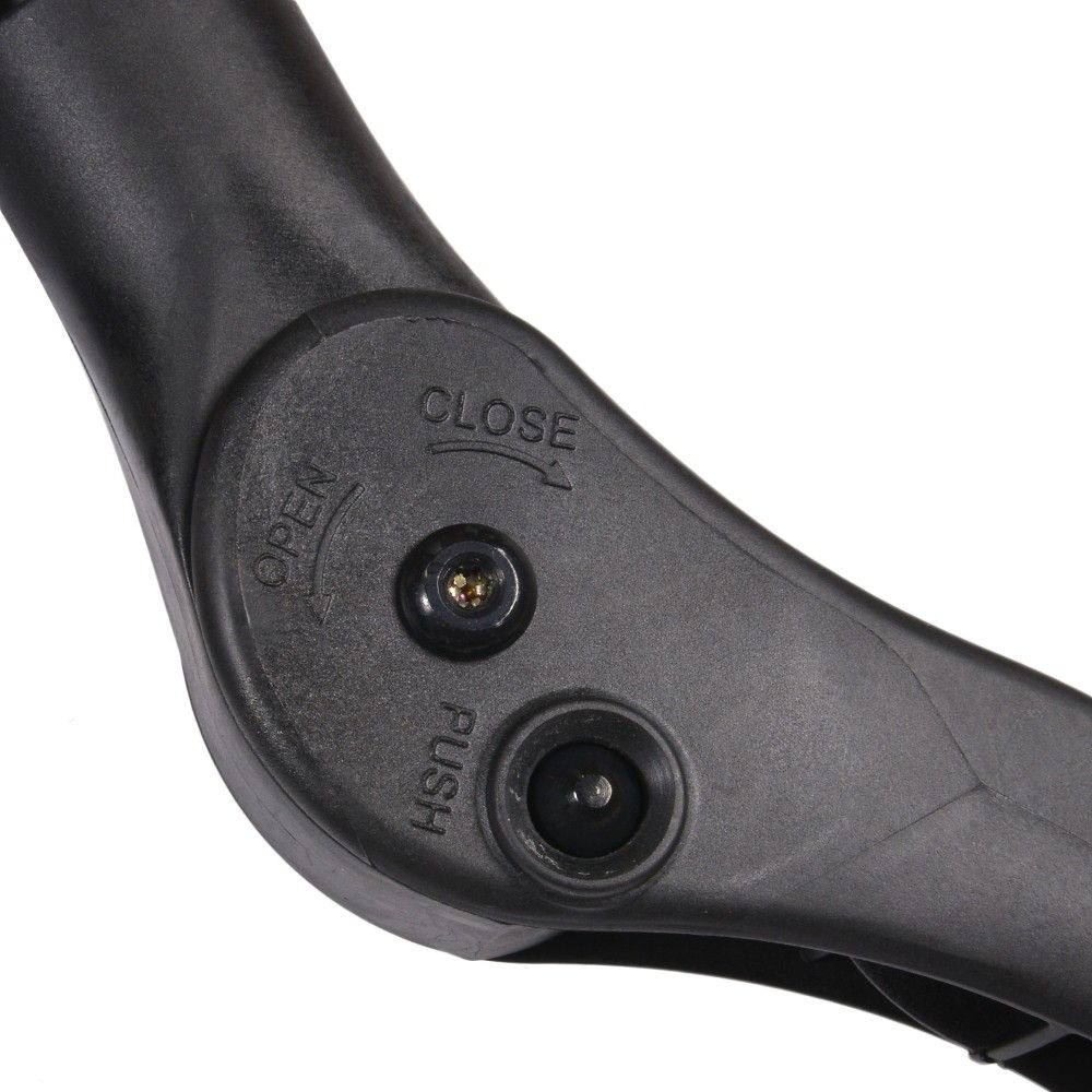 折りたたむときは、付け根の突起を押しながらハンドルを倒し、PUSHと書かれたところの突起を押した状態でCLOSE方向にハンドルをスライドさせると折りたたむことが可能。
