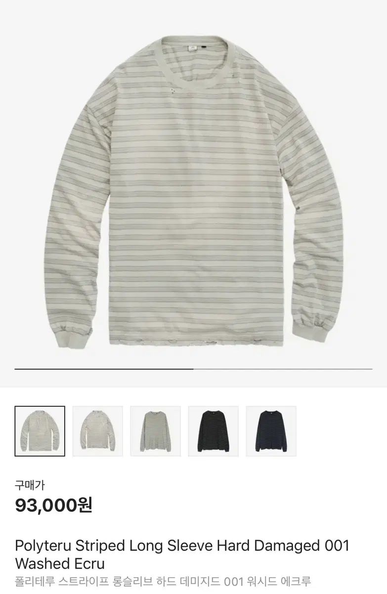 2 ストライプ ハード ダメージ 001 ウォッシュド エクリュ