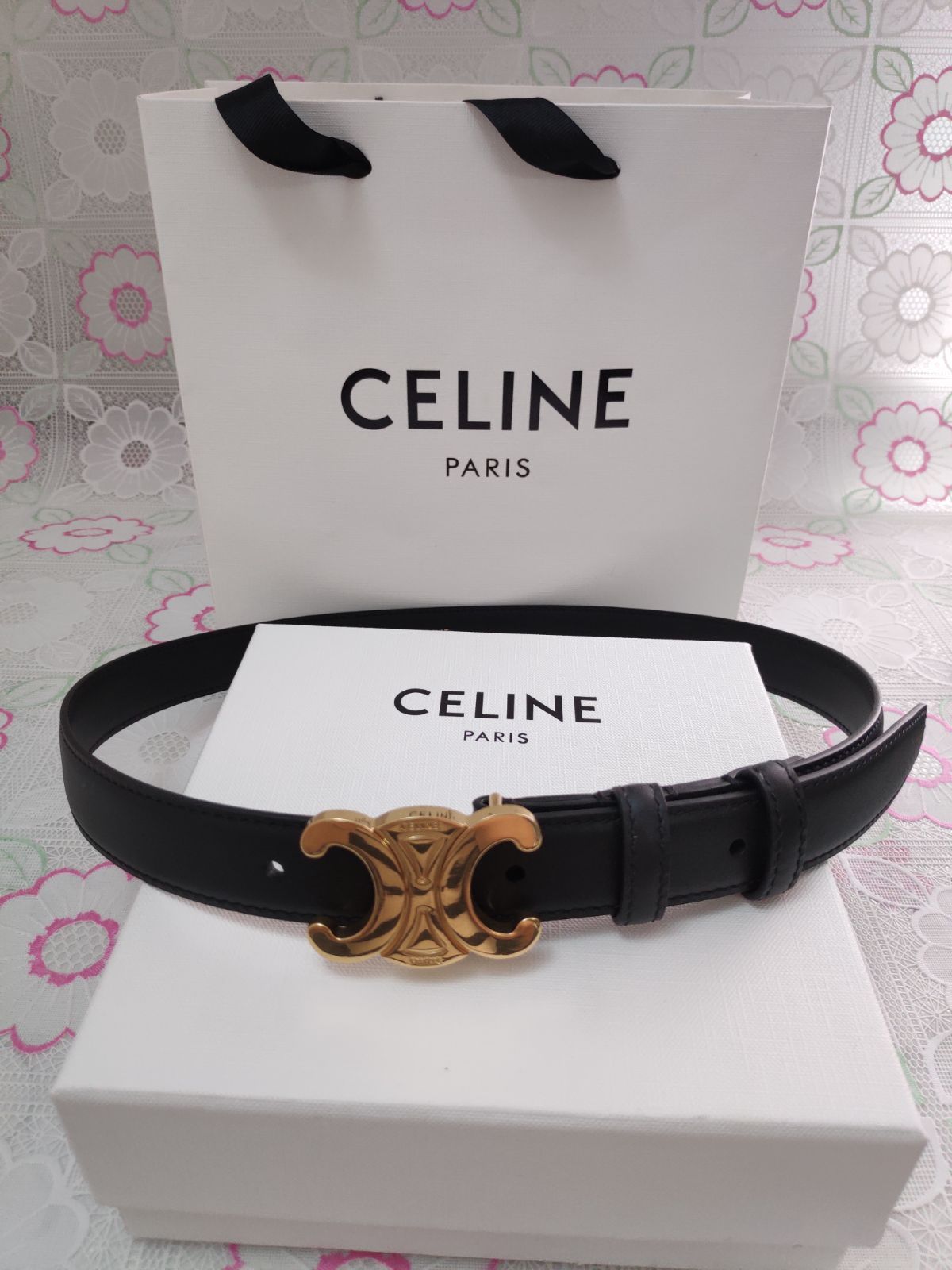 Celine セリーヌ ベルト トリオンフ レザーベルト 金色金具 男女兼用✜