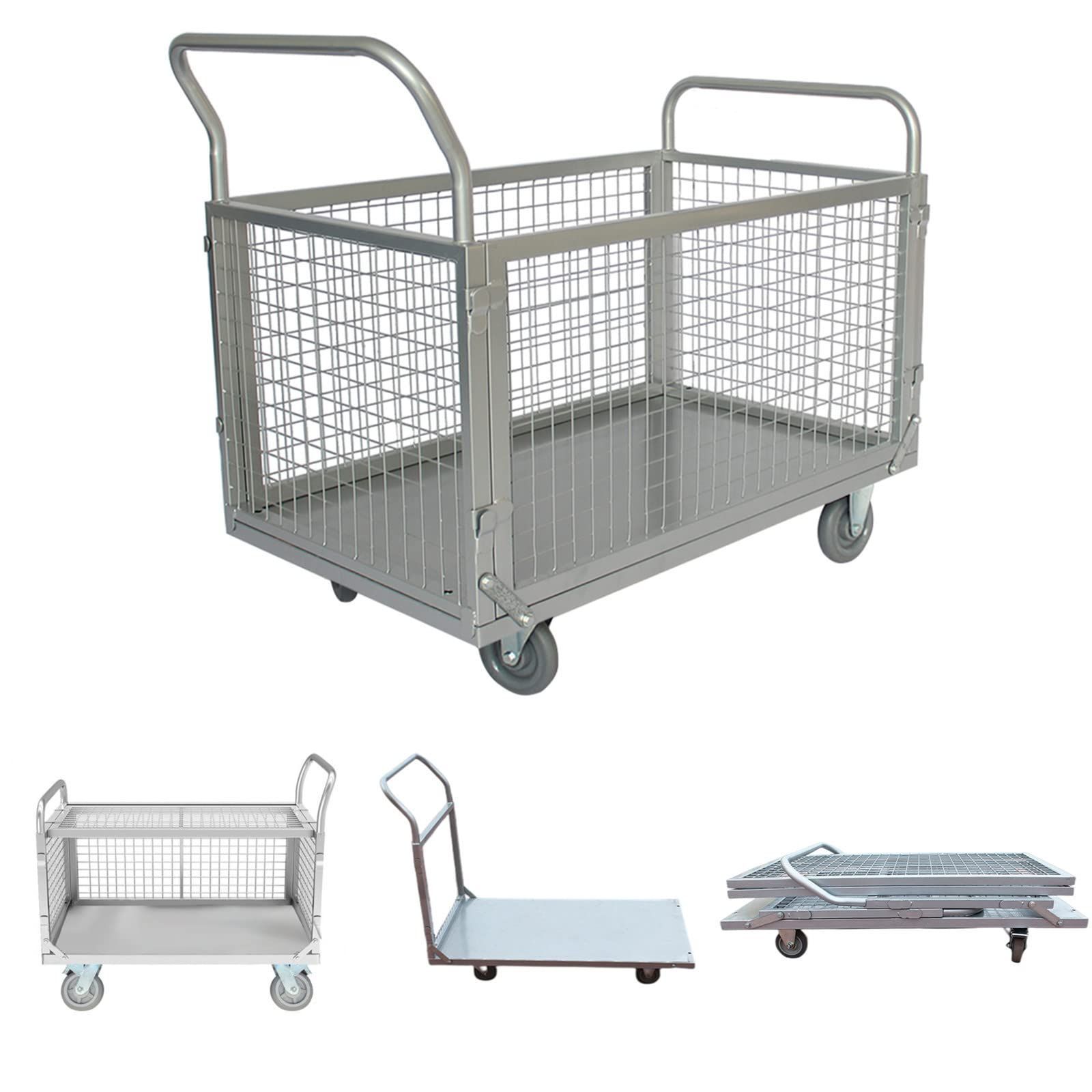 商品 会社 店舗 工場 倉庫 耐荷重300 kg ゴミ出し 静音 メッシュかご付き 3つスタイル ブレーキ付き 手押し台車 運搬車 カゴ台車 Jiza