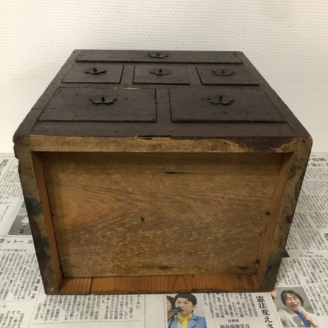 アンティーク 小引き出し 6杯 時代物 桜模様の取っ手飾り 組木作り #697