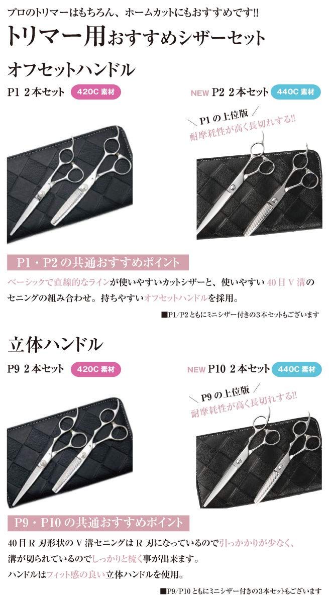 PET DEEDS 日本の鋏専門メーカー P 10シザー 7.0インチ トリマー用 立体ハンドルで楽に開閉ができるベースカット用鋏 スキ鋏 鋏 はさみ ペット 犬 トリミング カットシザー 保管ケース付き