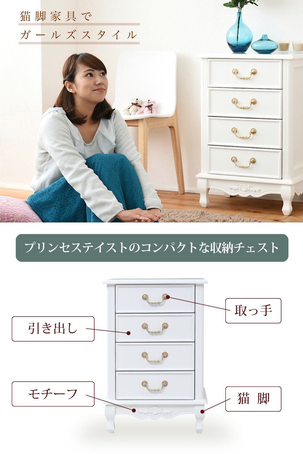 JKプラン 姫系家具 キャッツプリンセスduo チェスト 4段 猫足 木製 アンティーク調 幅50 ホワイト SGT-0117-WH