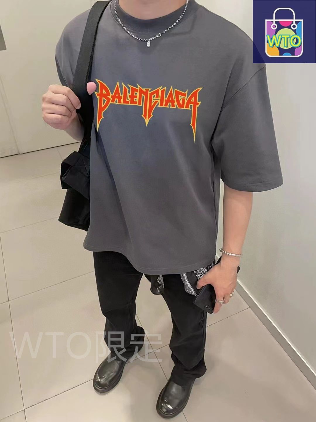 このバレンシアガのコラボレーション半袖は 最新のデザインで 炎のアルファベット大ロゴプリントが特徴的です -WTO輸入1