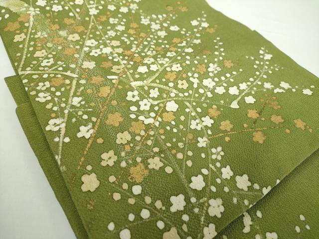平和屋着物 つけ帯 手描き 枝花文 鬼しぼ縮緬 金彩 正絹 ps