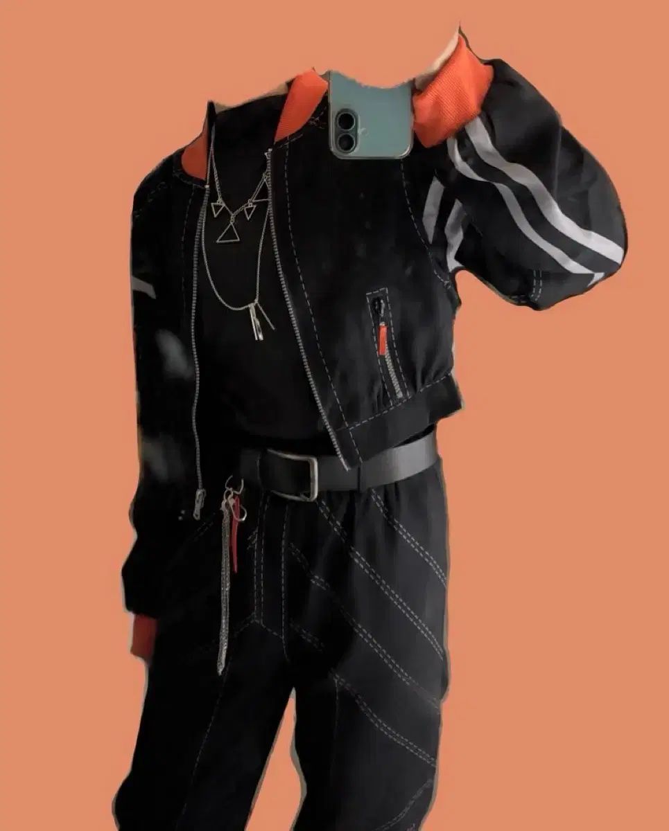 アウターウェア、ネック、パンツ、ネックレス、チェーンベルト2本、靴カバー、靴レッグストラップ