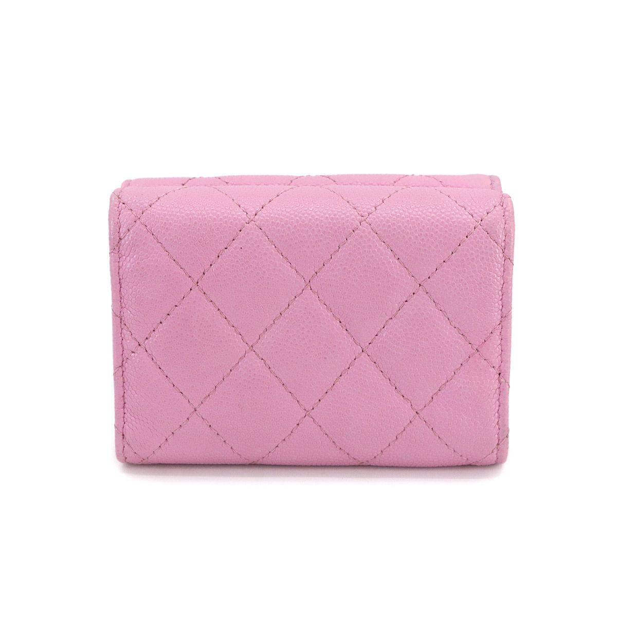 シャネル CHANEL マトラッセ クラシック スモール フラップ ウォレット 三つ折り 財布 キャビアスキン ピンク AP 0230 Wallet