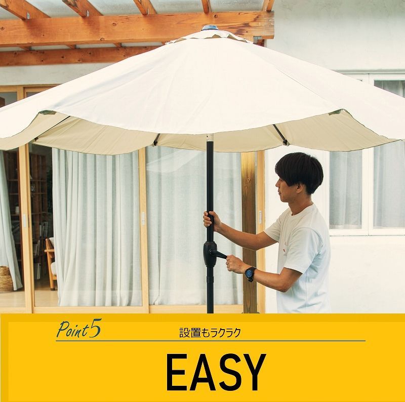 軽い力でパラソルの開け閉めが出来るので、