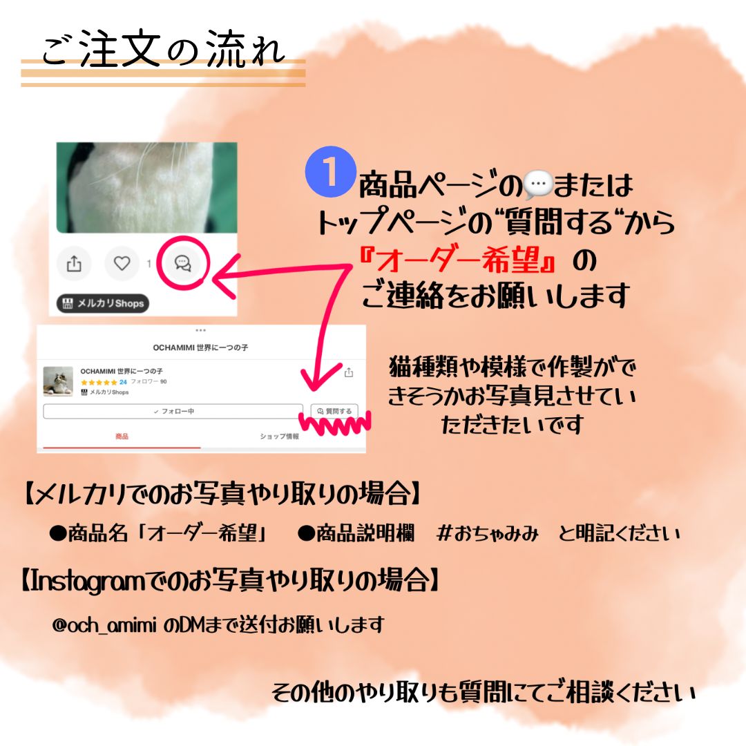 オーダーの流れは画像にて詳しくご案内しておりますが、ざっくりと以下のような流れになります