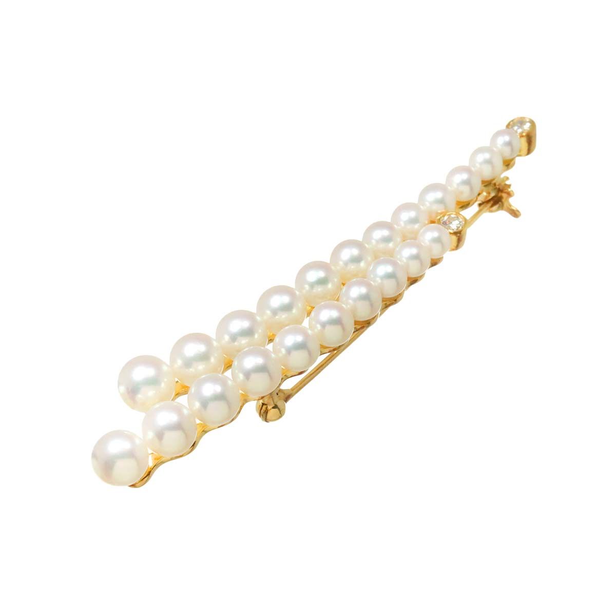 タサキ TASAKI アコヤ真珠 5.7-3.4 mm ダイヤ ブローチ K 18 YG イエローゴールド 750 パール 田崎真珠 Pearl Brooch