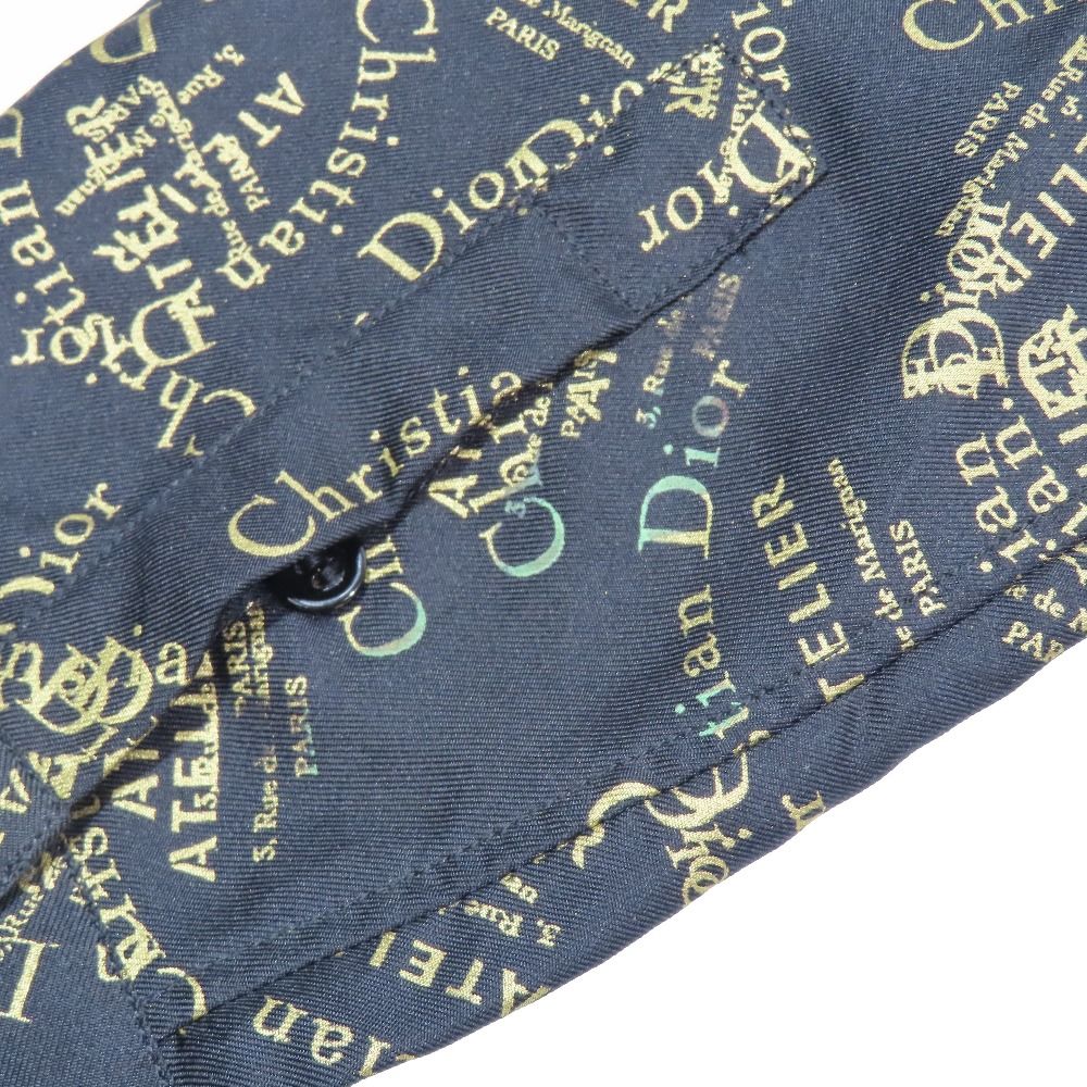 18 AW DIOR ディオール シルク100% シャツ 長袖 ATELIER アトリエロゴ プリント 総柄 カットソー 39 ブラック ゴールド メンズ 古着