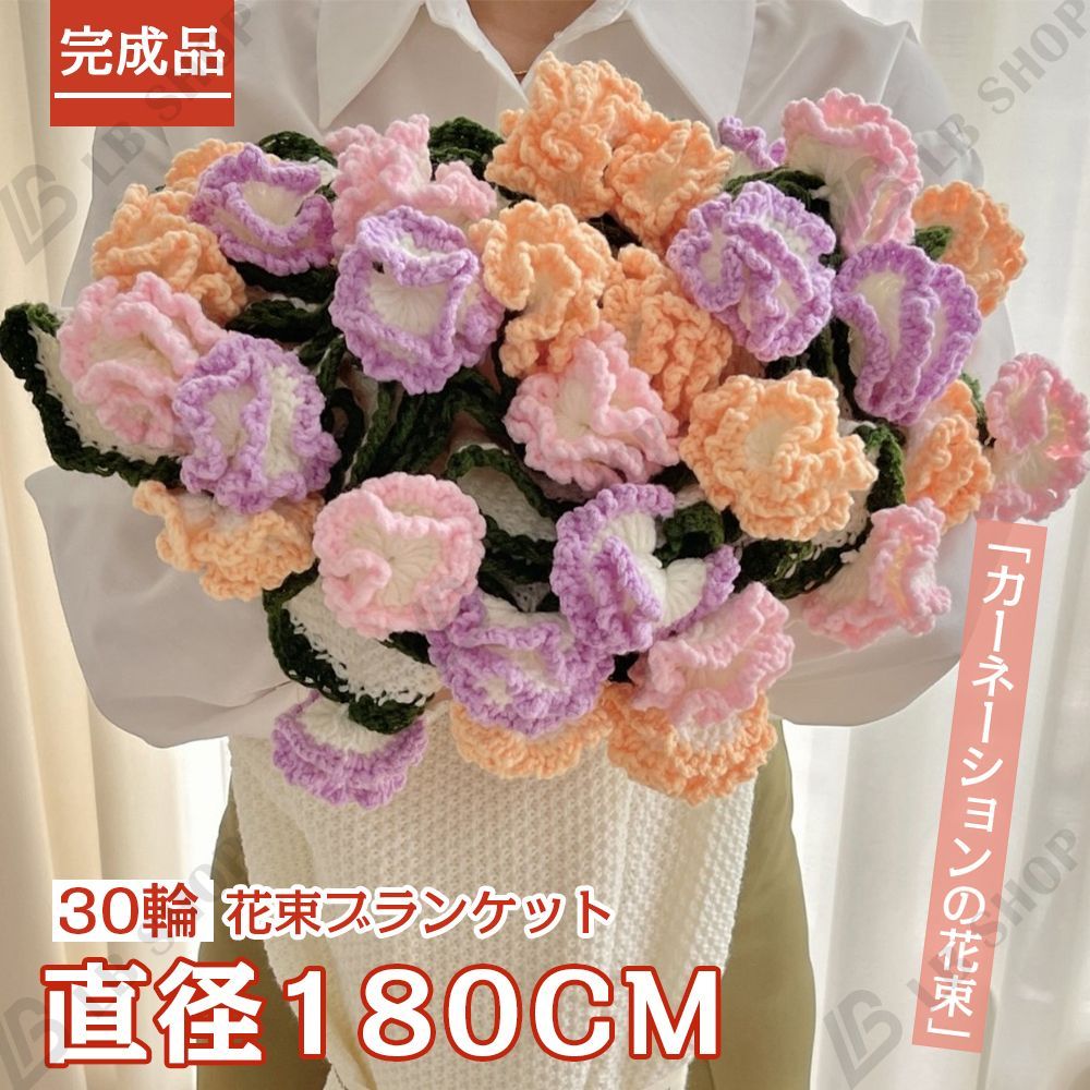 完成品 花束ブランケット180 CM カーネーション 花の毛布 れないお花 枯れない花 ニットブーケ 毛糸 かぎ編み 手芸 造花 編み物 プレゼント 記念日 卒業式 成人式 引越し オフィス 昼寝