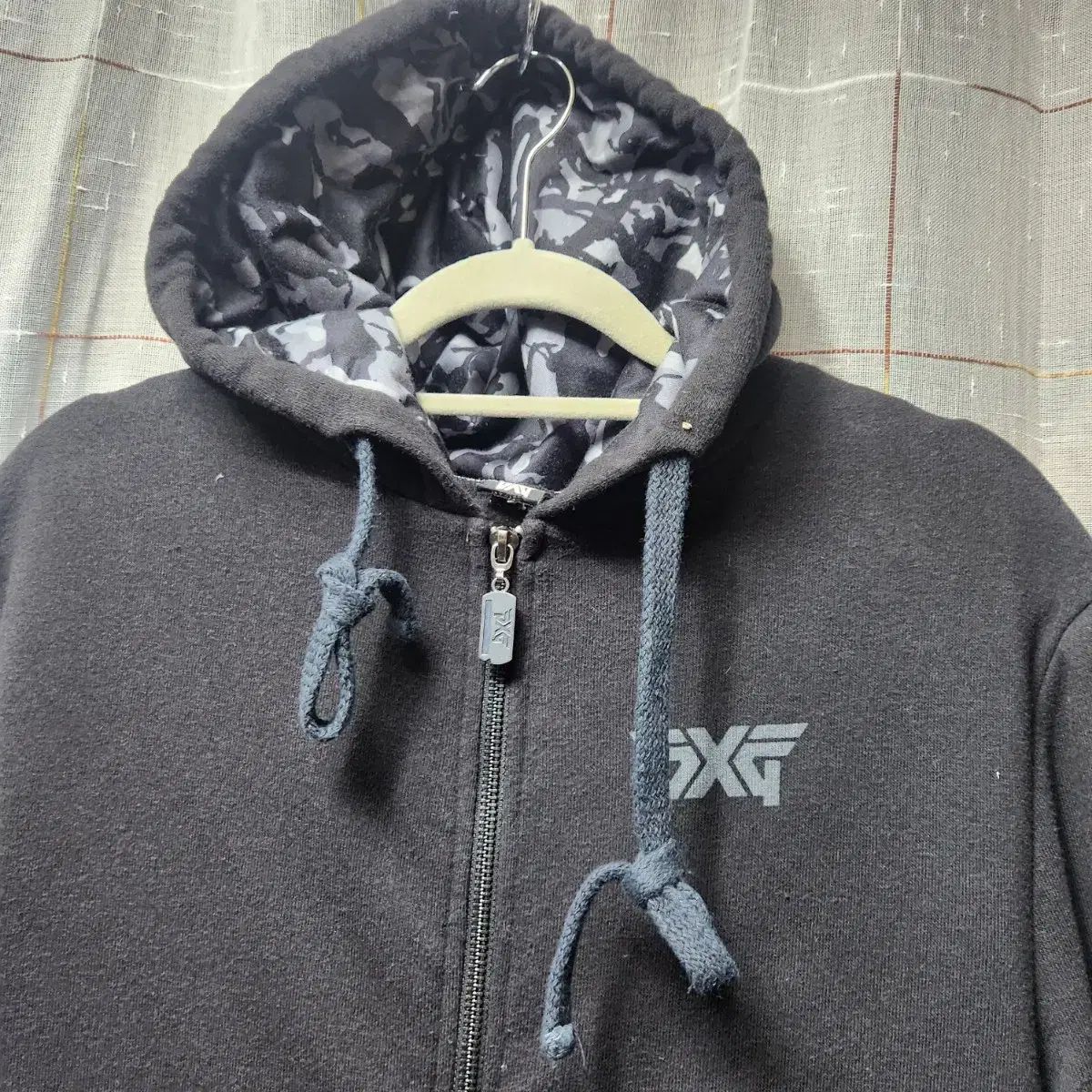 PXG メンズ ゴルフウェア ブラック 起毛 フーディー ジップアップ Mサイズです。裏地は POINT ポイント に良い カモフラ パータンになっています。起毛 裏地なので暖かく ランディング룩 연출하기 좋습니다。コメント(※メルカリshop取引では対象外、Mercari窓口まで要連絡) 無ければすぐ 安全決済して頂ければ大丈夫です!
